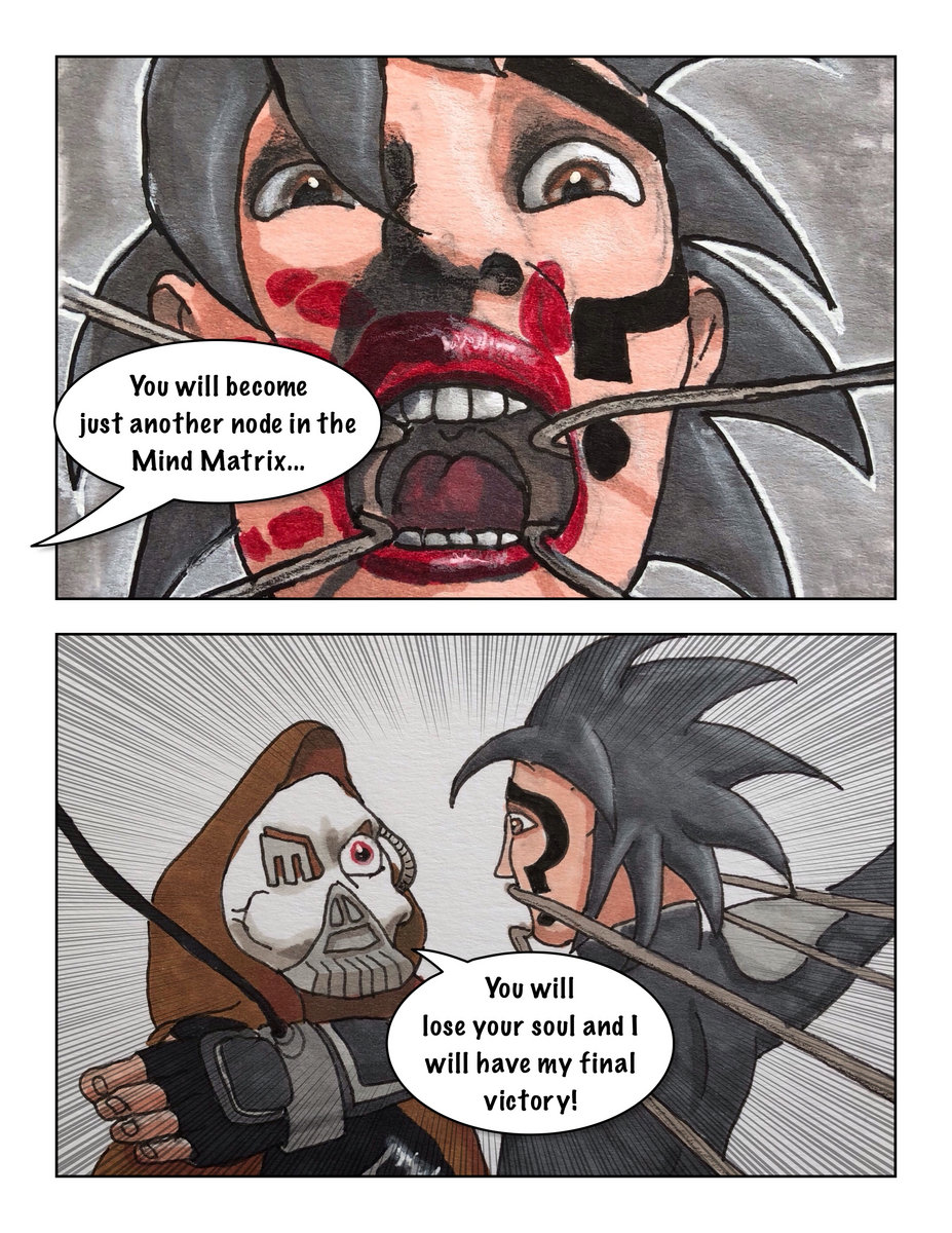 Ido is tortured by none other than The Psychophage (The entrance of The Psychophage is announced by a flickering and dimming of lights and a distant rumble) who attempts to force him to betray the whereabouts of his off-world friends. Ido, survives...just.