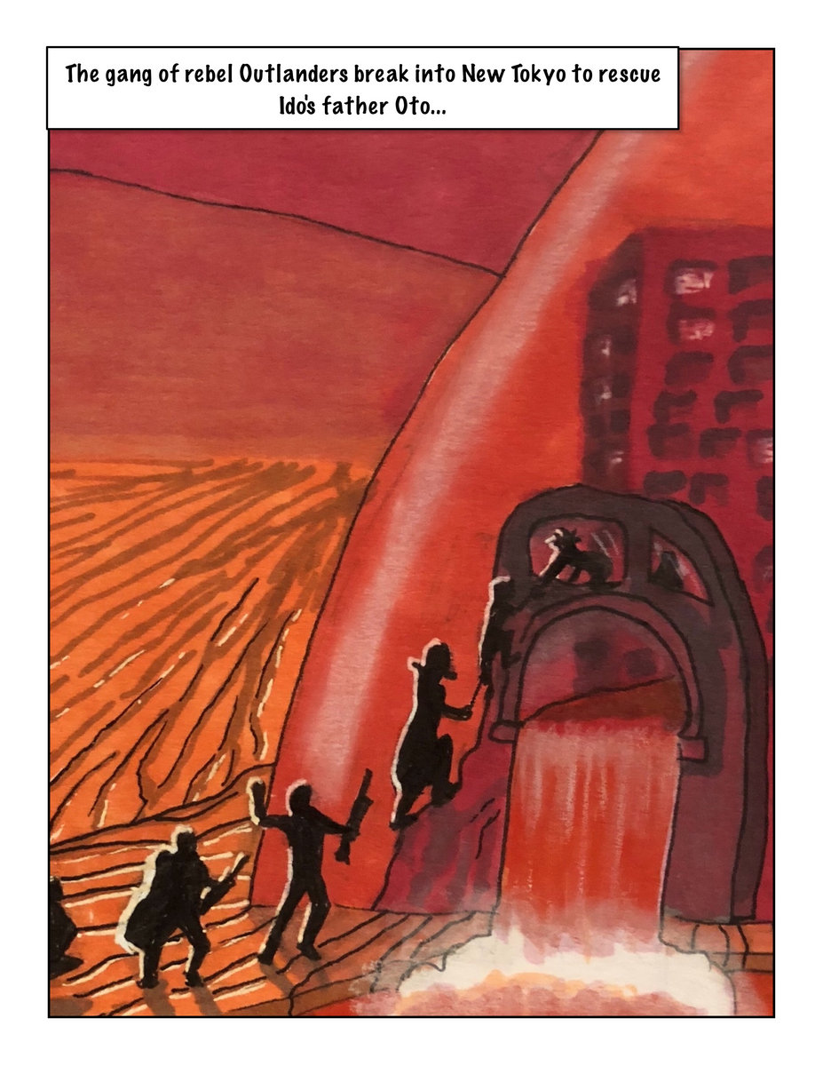 The gang of Outlanders break back into New Tokyo, hell-bent on freeing Ido's father and bringing The Elite crashing down. They have to use stealth to slip by the Elite's secret police droids.